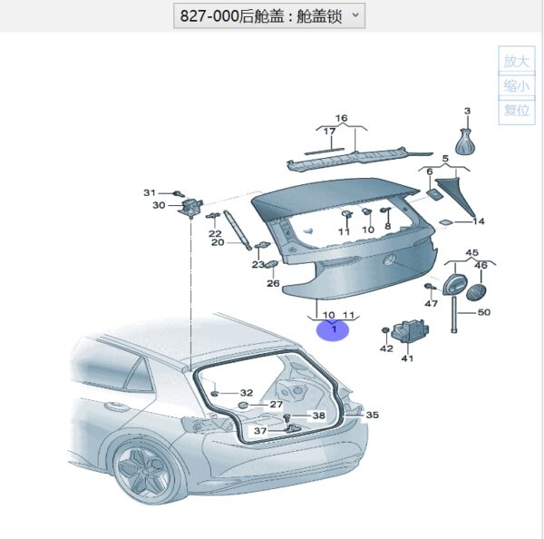 10D827021 – 后舱盖,包括:1 后窗玻璃 原厂配件,适用于上汽大众ID.3