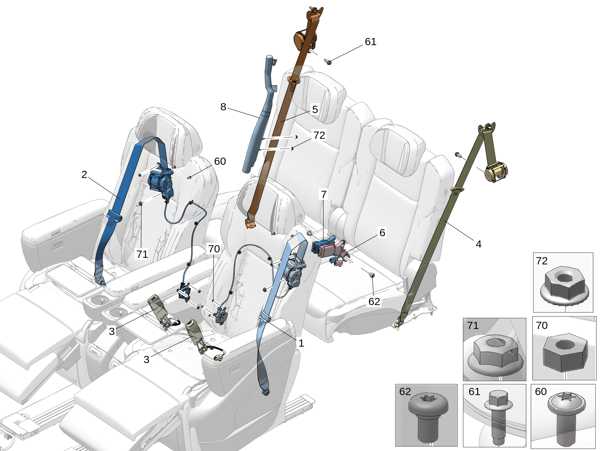 | 2 | 6608081220LA2 | 第二排座椅安全带 右 | ||