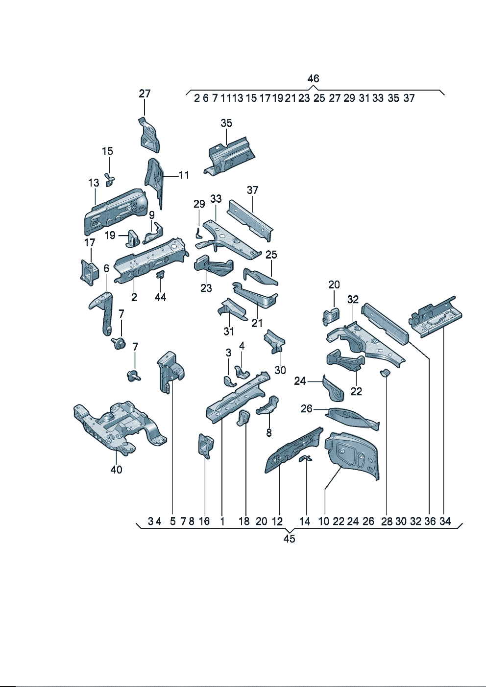 | 45 | 1EA803091E | 纵梁及加强件_和焊接螺母 | 左前 | |
