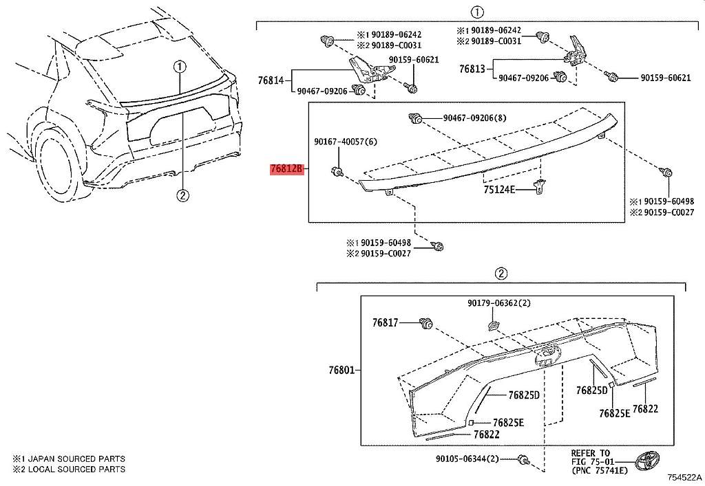 76812-0R140 2号行李箱门外装饰条 适用于丰田BZ4X