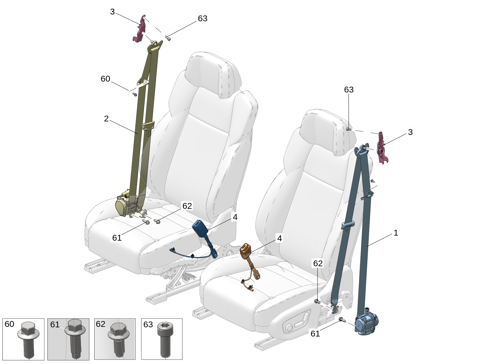 | 2 | 8890369821LA2 | 前排乘客安全带 右 | ||