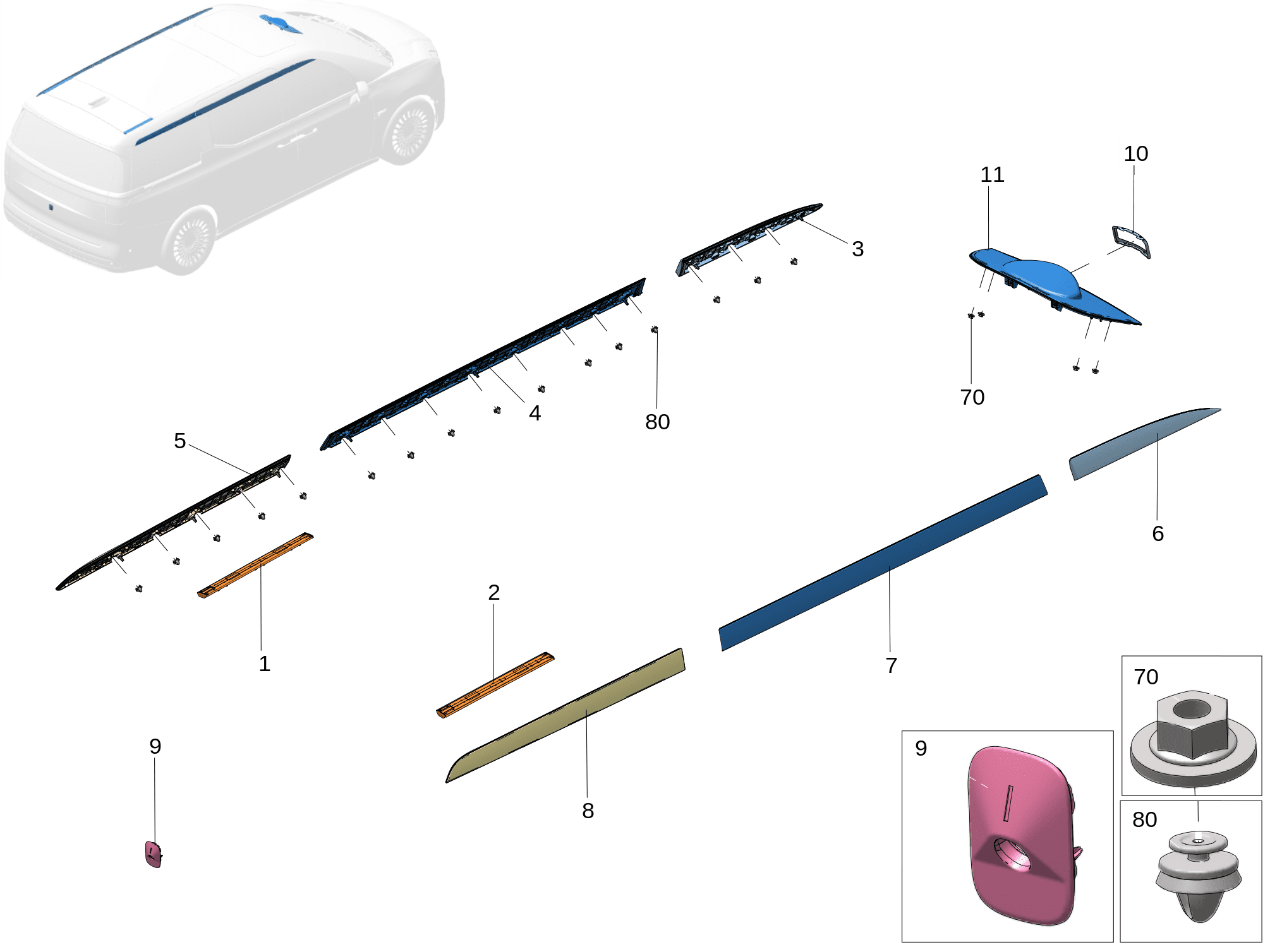 | 7 | 8891385276S02 | 车顶饰条中段 右 | ||