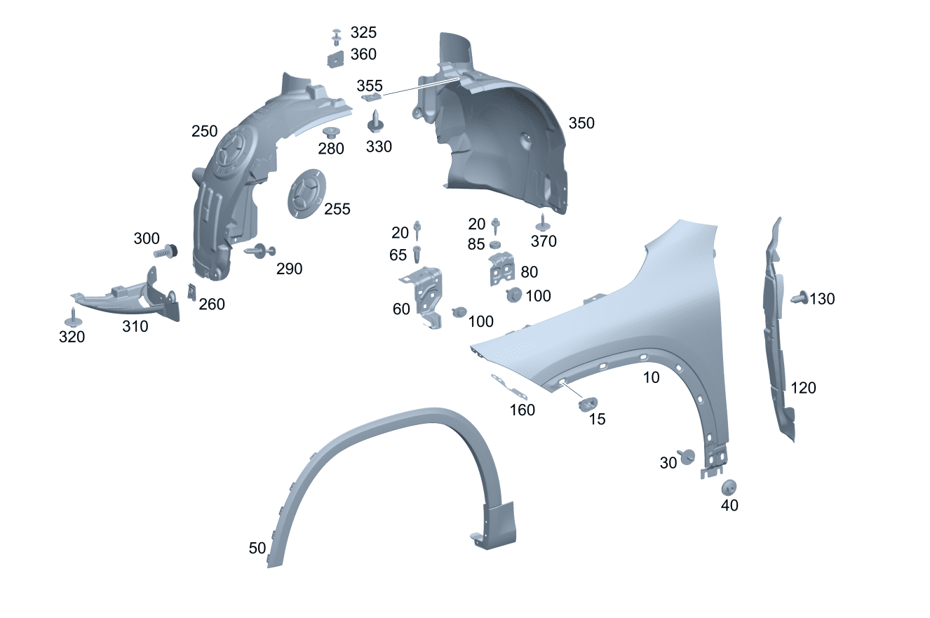 | 250 | A2478840100 | 车轮拱罩盖板 左前侧 | ||